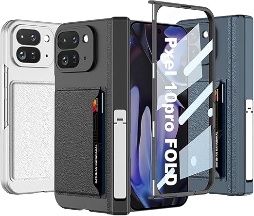 【Google Pixel 10 Pro Fold / 9 Pro Fold専用】肌触感 ケース 全機能折り畳み 金属多角度スタンド 鋼化ガラス カード収納 磁気吸着ヒンジカバー ワイヤレス充電対応充電 マットの表面 薄型 軽量 レンズ保護 滑り防止 指紋防止 おしゃれ スマホ Beautycatcher - 黒 a