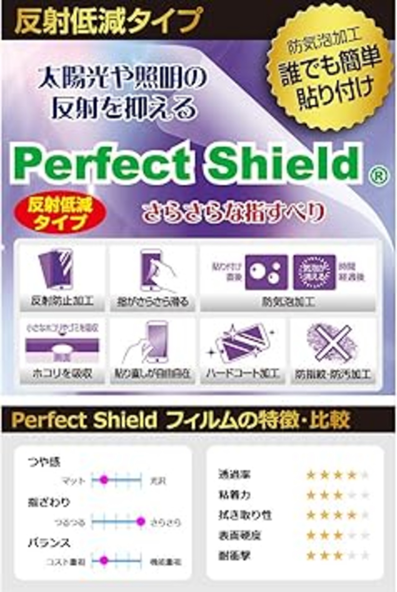 「Perfect Shield」は画面の反射を抑え、指のすべりもなめらかな指紋や皮脂汚れがつきにくい『アンチグレアタイプ(非光沢)の保護フィルム』