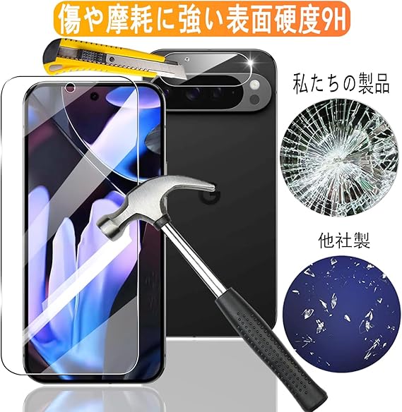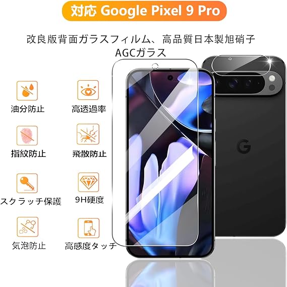 【9H強度&飛散防止】対応 Pixel9 Pro 強化ガラス 保護フィルムは日本旭硝子素材を採用します。 落下、スクラッチ、衝突、衝撃