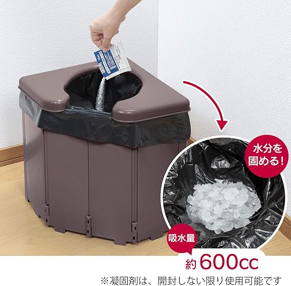 フタ付きで、災害時や断水などの非常時以外にも、エレベーターやアウトドア、ポータブルトイレとしても役立ちます。