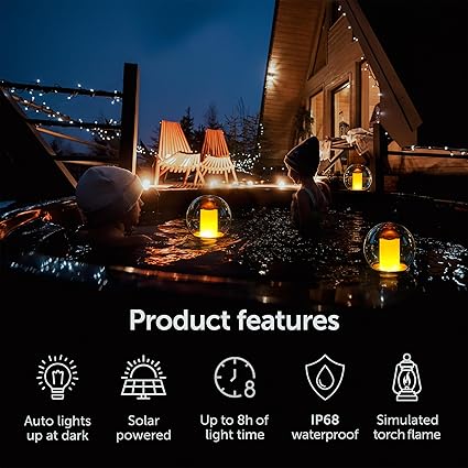 屋外でインスピレーションを与える雰囲気を作りましょう:庭、プール、池を雰囲気のある照明で照らします。 プールパーティーの装飾、パティオの装飾、池の装飾を高め、家族やゲストを最も歓迎する環境を作りましょう。