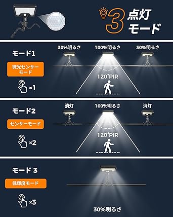 【600ルーメン超高輝度&広角センサーライト】92個の高品質LEDを搭載した人感センサーライトが、最大600ルーメンの明るさで5m範囲・120°広角をくまなく照らします。玄関通路や庭周辺の暗がりを解消し、夜間の防犯・安全性を強化。ソーラーライト 屋外 人感センサーは侵入経路を完全カバーし、不審な動きを即時検知します。