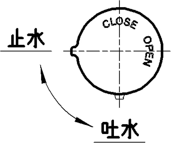 90度開閉なので出し止めが楽に行えます。メッキ仕様のハンドルに吐水、止水の表示付き。