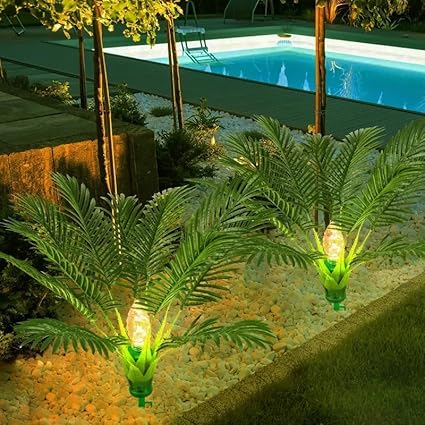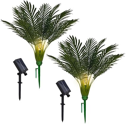 2つの太陽街灯、ヤシの木の屋外の庭ライトのセット、パティオのテラスの庭の舗装の景色の装飾のクリスマスの装飾のための引込められた自動夜照明8モード、(ヤシの木ライト) (パームツリーライト) a
