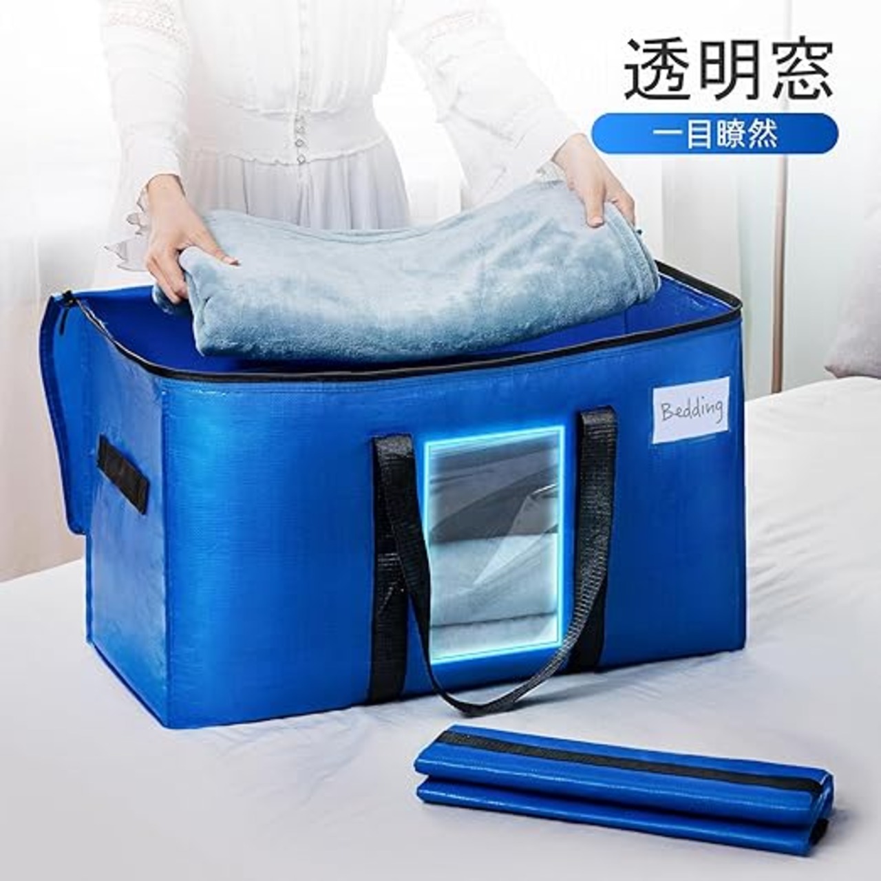 TAILI 大きいバッグ 布団収納袋 引越しバッグ 収納ケース 特大容量 透明窓 持ち手付き 衣装ケース 洋服 羽毛布団 防塵防水 折りたたみ式 カバン 省スペース 引っ越し 背負える キャンプ 旅行 耐荷重 ブルー 4個セット 100L a