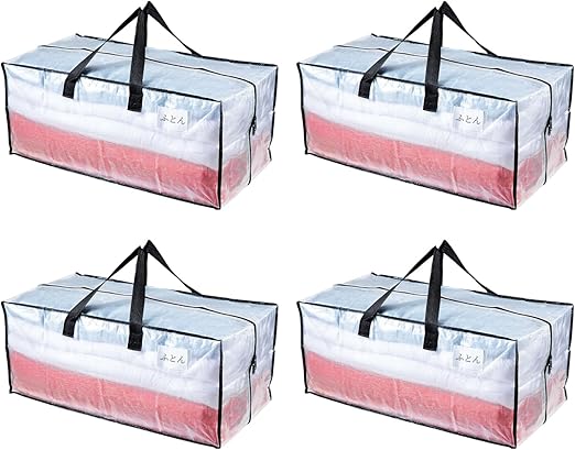 TAILI 大型収納袋 引越しバッグ 布団収納カバン 特大容量 ビッグバッグ 寝具ケース 持ち手付き 洋服 衣装ケース 羽毛ふとん 防塵防水 折りたたみ式 省スペース 引っ越し 背負える キャンプ 旅行 耐荷重 透明 4個セット a