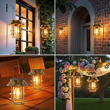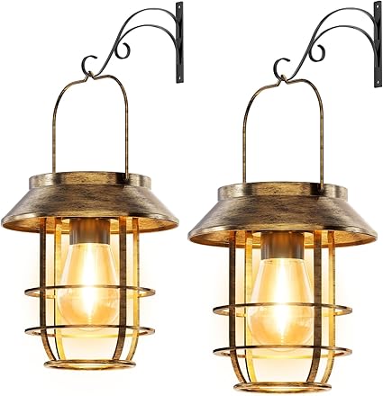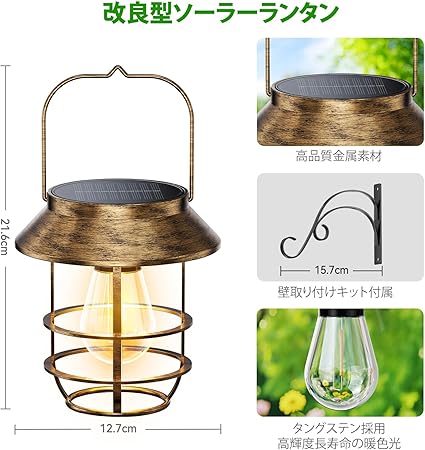 Letmy ソーラーライト 屋外 防水 ソーラーランタン ガーデンライト 鉄製 おしゃれ ledランタン 電球色 太陽光パネル充電 夜明け 自動オン/オフ 庭、花壇、パティオ、玄関、ベランダ、壁、駐車場、歩道、パーティーなどに適用 屋外 照明 ガーデニング イルミネーション 2個セット a
