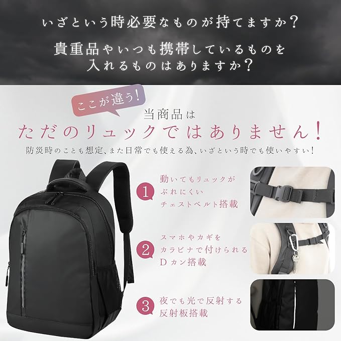 [unizom] リュック 【防災士監修】 メンズ レディース おしゃれ 人気 リュックサック タウンリュック 大容量 防災 防水 軽量 a