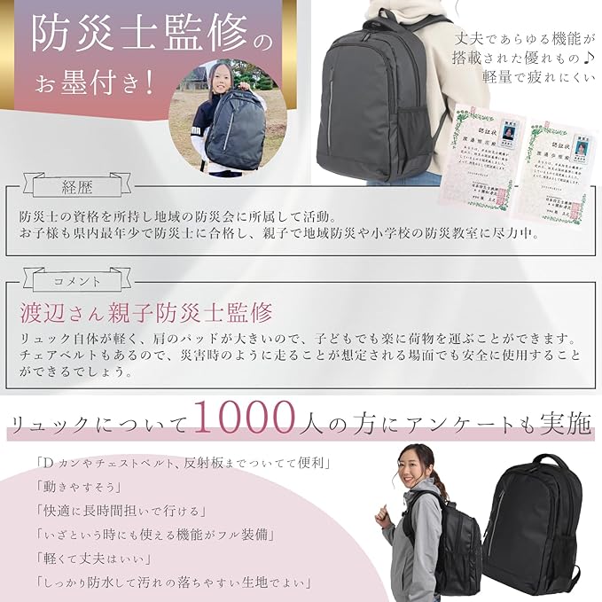 [unizom] リュック 【防災士監修】 メンズ レディース おしゃれ 人気 リュックサック タウンリュック 大容量 防災 防水 軽量