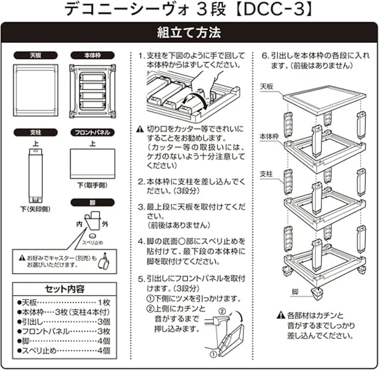材質:天板・本体枠・支柱・引出し・フロントパネル・脚:ポリプロピレン / スベリ止め:ウレタンフォーム