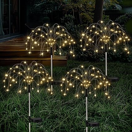 Lewondr ガーデンライト 花火型 4本セット クリスマス用ライト イルミネーションライト LEDライト 40本ワイヤー 120球 全長80cm ソーラー充電式 自動点灯 省エネ 防滴 屋外用 庭/公園/屋外/イベント/商店街 飾り インテリアライト オーナメント a