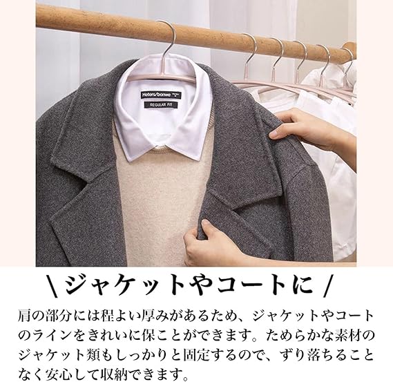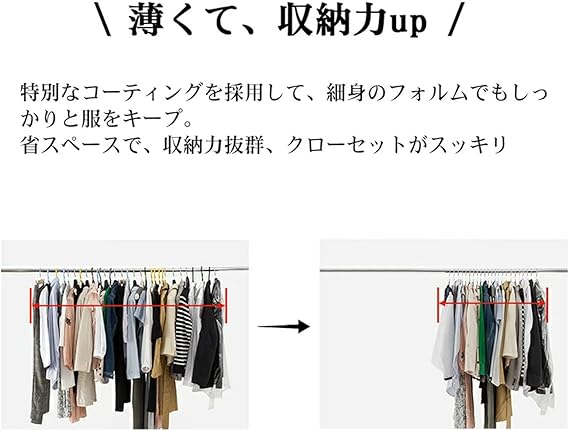 「すべらない」PVC材料が滑り止めの効果がよくて、どんな衣類を掛けても落ちる心配がありません。 コート、洋服、キャミソール、スカート、タオル、またズボンにも対応できます。安心に使えるハンガーです。
