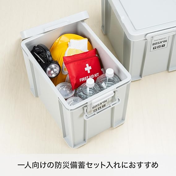 天馬 日常に馴染む頑丈な防災用品収納ボックス BOSA+IN 積み重ねボックス 44 暗闇でも場所がわかる収納ケース 防災キット 備蓄 非常食収納 日本製【サイズ 幅30×奥行44×高さ32cm】 a