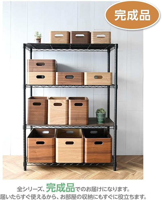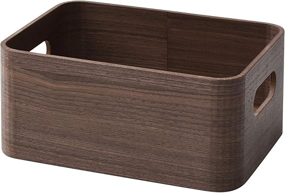 山善(YAMAZEN) 収納ボックス ブラウン ハーフ・浅型 完成品 天然木(ウォールナット材)使用 TSB-1AH(BR) a