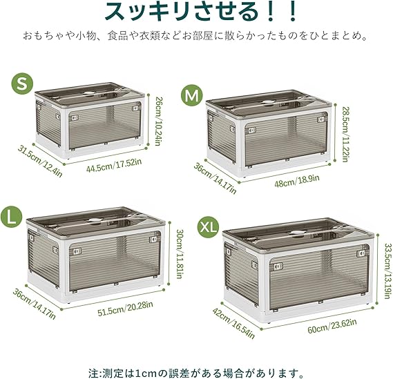 Freely 多機能折りたたみ収納ボックス 積み重ね可能 蓋付き 大容量 キャスター付き 防塵防湿防虫 ABS樹脂 家庭用/車載/アウトドア対応 5面開閉式 簡単組み立て 衣類・布団・本・食品収納 S(44.5×31.5×26) cm,36.5L a