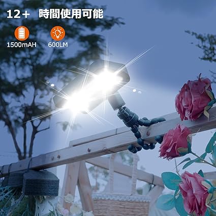 太陽光充電&長時間使用:1500mAh大容量バッテリー内蔵で、12時間以上の連続使用が可能。人感センサー搭載で電力節約し、効率的に稼働します。