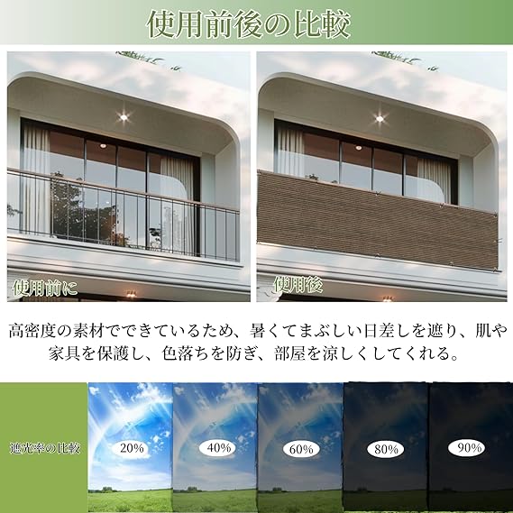 【シェード 屋外-遮光・UVカット】 バルコニーブラインドは遮光率80%以上、UVカット率90%以上です。バルコニーブラインド 日除けとして、日差し