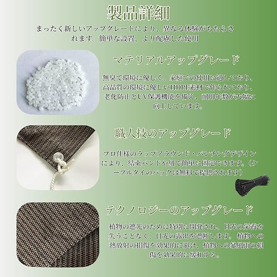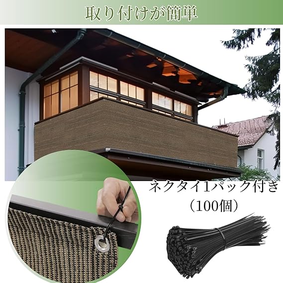 【目隠しフェンス-高品質のHDPE素材】はHDPE生地でできており、屋外からの視線を遮る効果がありながら不透明なので、バッフル付きのサンシェードやバルコニーのサンシェードとして使用できます。さらに、遮るもののない通気性と優れた透湿性も備えています。プライバシーを守り、熱を遮り、安心してリビングの換気ができるので、ベランダの日除けとしておすすめです。