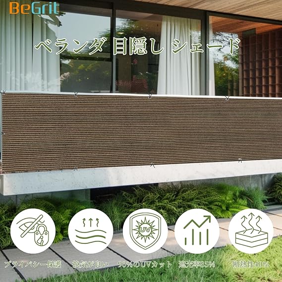 BeGrit ベランダ目隠し シェード 濃い色で目隠しバルコニーシェード オーニング 風通し良い uvカット プライバシー保護 バルコニーシェード マンション フェンス 家 庭 モカ色(6m×0.9m) a