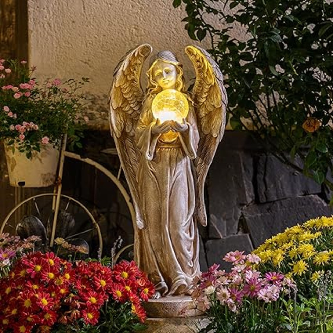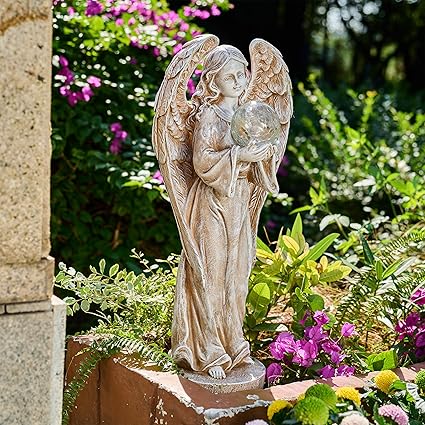 【エレガントな天使】天使のデザインは優雅で荘厳で、翼の細部が丁寧に彫られています。静かで聖なる雰囲気を演出し、特に西洋風のお庭にぴったりです。この天使像は、単なる装飾品だけでなく、お庭の美しさを際立たせると同時に、人の心を癒し、支え、導く特別な存在になります。