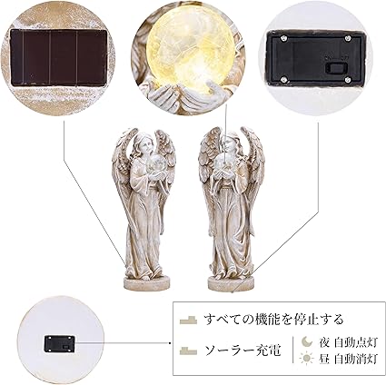 Valery Madelyn ガーデンライト ガーデニング雑貨 天使 彫像 置物 ガーデンライト 屋外 ソーラーライト 屋外 ガーデンオーナメント庭飾り 芝生飾り 庭の装飾 樹脂製 18cm a