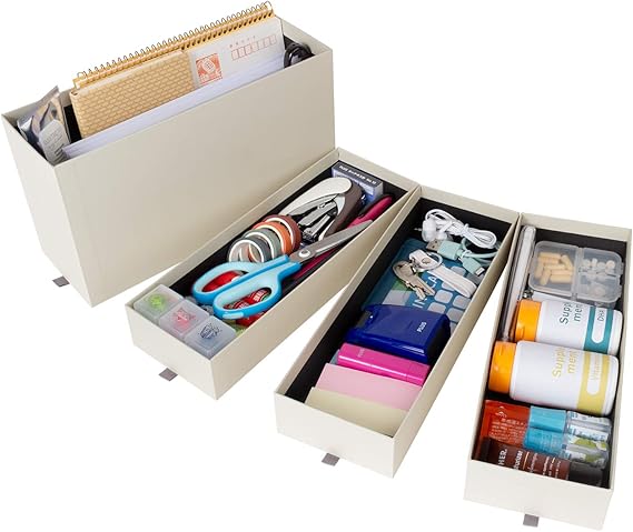 お部屋のこまごま、まとめて簡単整理。しっかりとした紙製収納ボックス。