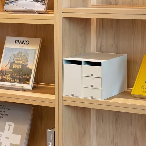 プラス デスクオーガナイザー 小物入れ 収納ボックス 収納ケース 引き出し 化粧品 リビングポスト クリームホワイト Lサイズ LP-304YL 85-134 a