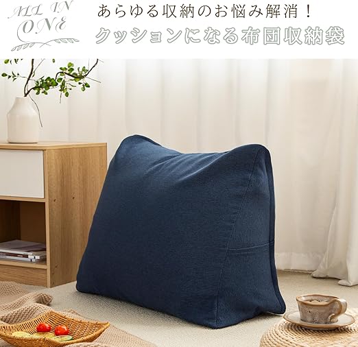 Haguko 布団収納袋 クッションになる 羽毛布団 毛布 布団 マットレス 敷布団 座布団 衣類 着物 収納袋 収納ケース 三角形 立てられる 背もたれ ポケット付き ロイヤルブルー a
