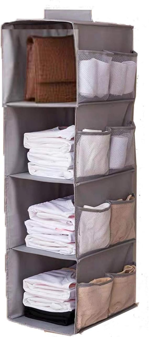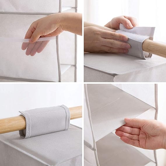 吊り下げ収納 衣類ラック 4段 クローゼット収納 タオル 下着 バッグ 吊るす収納 大容量 ポケット付き 折りたたみ グレー Uciy a