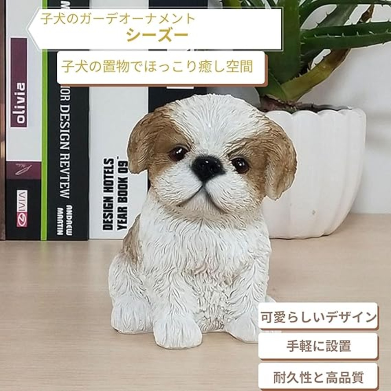 CocoroFactory ガーデン オーナメント 犬 子犬 置物 飾り オブジェ フィギア (シーズー) a