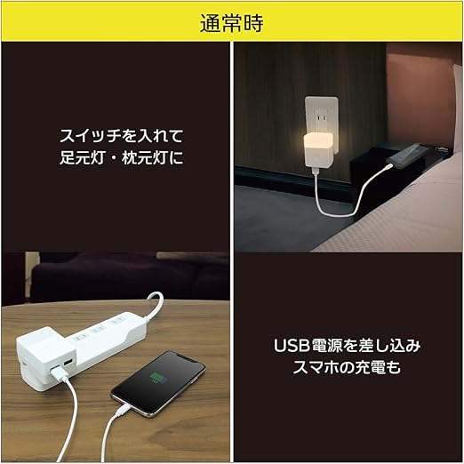 トップランド ライト付き USBアダプタ USB2ポート 「停電時自動で点灯」 携帯灯 明るさ3段階調整 連続点灯約50時間 急速充電 防災 CHAC24L-WT a