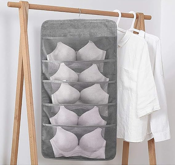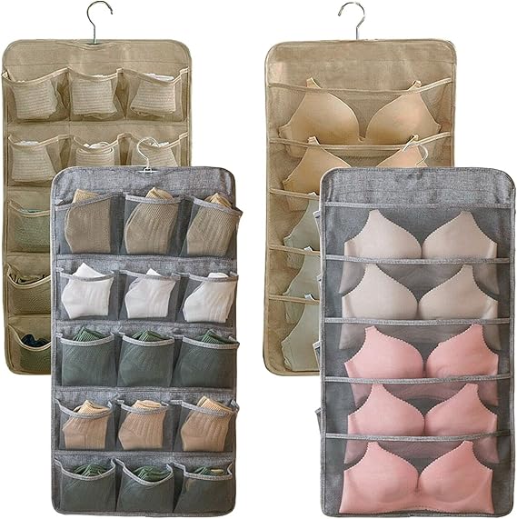 【2色のミックス2枚組】 下着収納 ウォールポケット吊り下げ収納 壁掛け 収納バッグ 衣類 下着 ・ 靴下 ・ パンツ ・ ブラジャー ・ ネクタイ 両面 ハンガー クリアポーチ 収納ラック オックスフォード生地 a