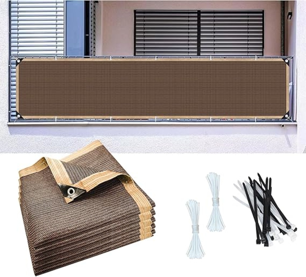 Haikawi ベランダ 目隠し シェード 80x500cm バルコニーシェード 目隠し フェンス UVカット 風通しも良い家 窓 ベランダ 快適空間 プライバシー保護目隠しシート 日よけに目隠しに大活躍(結束バンド30本付き、固定用ロープ2本付き) a