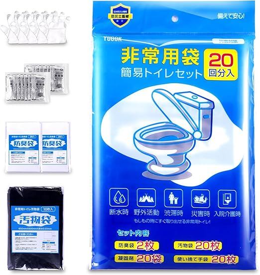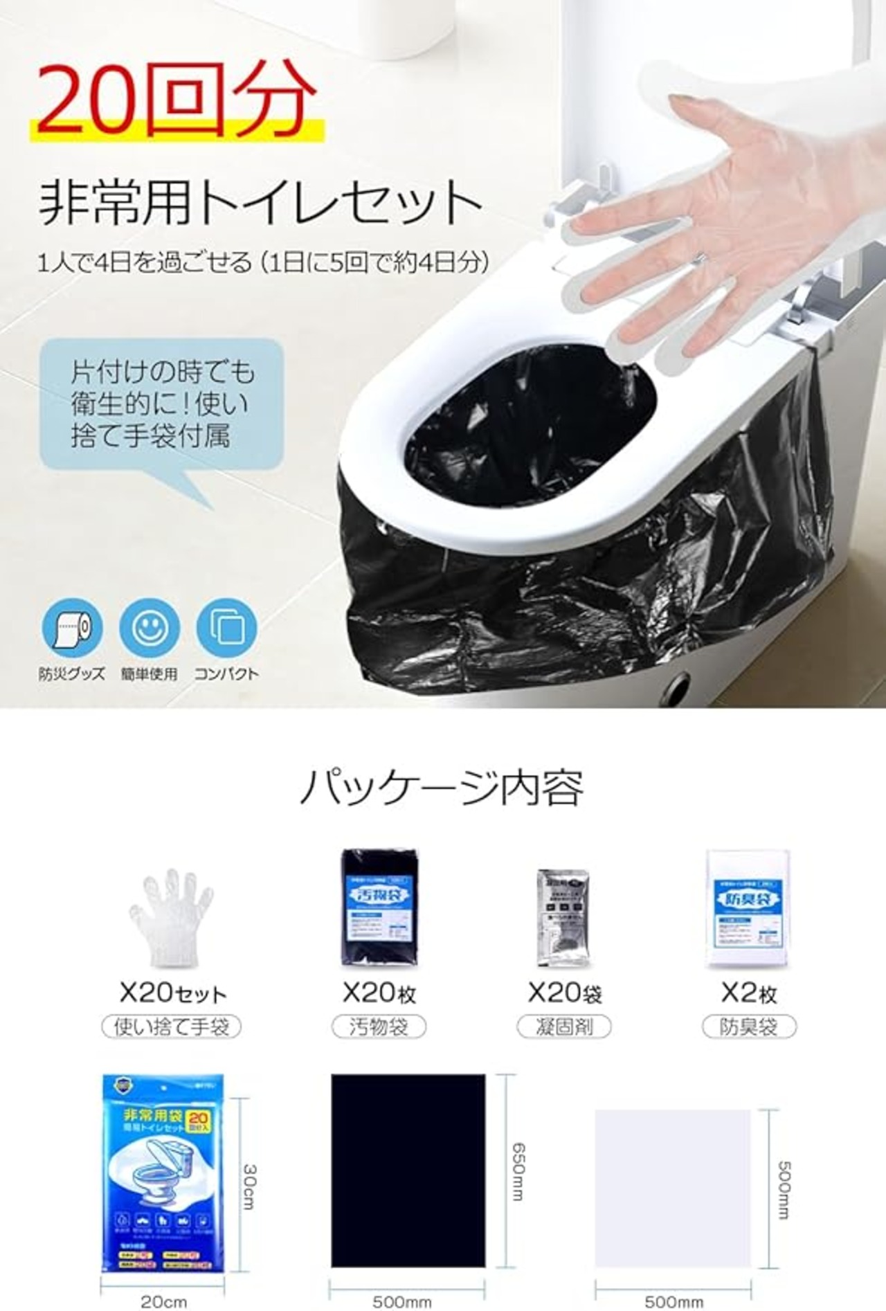 簡易トイレ 【防災士監修】 携帯トイレ どこでも簡単トイレ 防災グッズ 非常用トイレ 災害用 防災トイレ ポータブルトイレ15年保存 防臭袋 大便 強力消臭 アウトドア 介護用/台風/洪水/災害時/断水時 20〜100回分 (1セット(20回分)) a