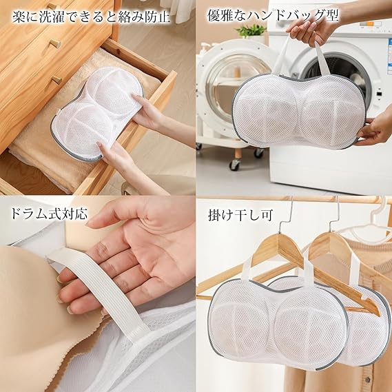 【3Dアップグレード新設計のブラジャー洗濯ネット】最新デザインのブラジャーに対応する無蛍光洗濯ネット(立体サポートシェル内蔵),洗濯後はそのままネットごと干せちゃう優れ洗濯ネット。隠しジッパー、長寿命、洗濯機の内壁の傷を防ぎます。厚手の立体メッシュは、クッションのような働きをするので、ブラジャーの保護にピッタリ。 大きいサイズ:約34×20cm(Gカップには適していません) 超軽量:約80g。ブラジャー洗濯ネット仕様 本体:多層ポリエステル、3Dインナー:PVCブラジャーの型くずれをしっかり防ぎ
