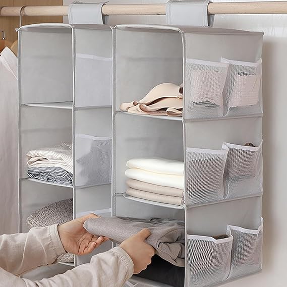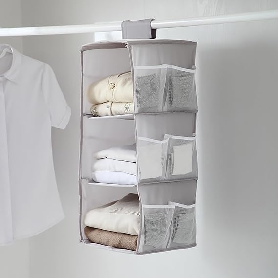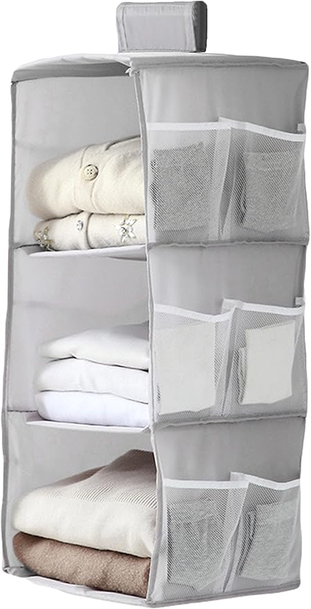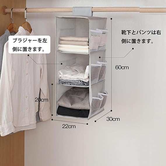 吊り下げ収納 2段式 3段式 衣類ラック クローゼット 水洗い可能 防湿防カビ 取り付け簡単 下着 靴下 帽子 収納 インストール不要 (グレー, 3段式) a