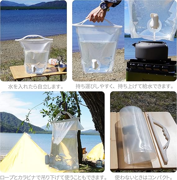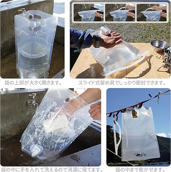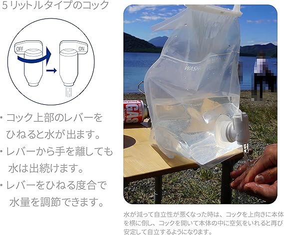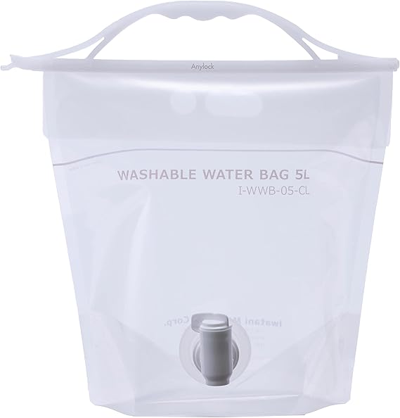 岩谷マテリアル 水タンク ウォッシャブル ウォーターバッグ 5L 透明 WWB-5CL 注ぎやすいコック付き キャンプ レジャー 防災 約37×36×16cm a