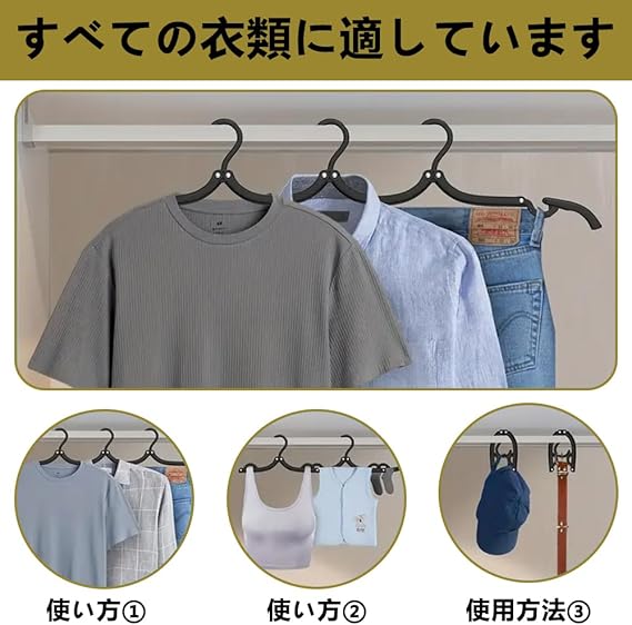1.クリップ付きでさらに便利!旅行に最適な6本セット >>折りたたみハンガーにクリップを追加。靴下や下着も一緒に干せて、旅行や出張先でも大活躍します。