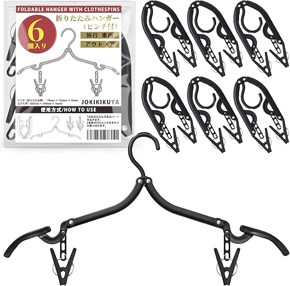 折りたたみハンガー 旅行用ハンガー 旅行 洗濯物干し ハンガー 洗濯ハンガー 携帯ハンガー 6個セット 12クリップ 折り畳み式 携帯用 洗濯 物干し 便利 軽量 省スペース ピンチ プラスチック 黒 出張 商務 アウトドアなど アウトドア (黒【6個入り】) [並行輸入品] a