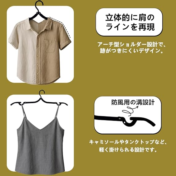 3.高品質PP素材採用で幅広い衣類に対応 >>厚手でなめらかなPP素材を使用。大人用コートから子供服、キャミソール、タンクトップ、靴下までしっかり干せます。