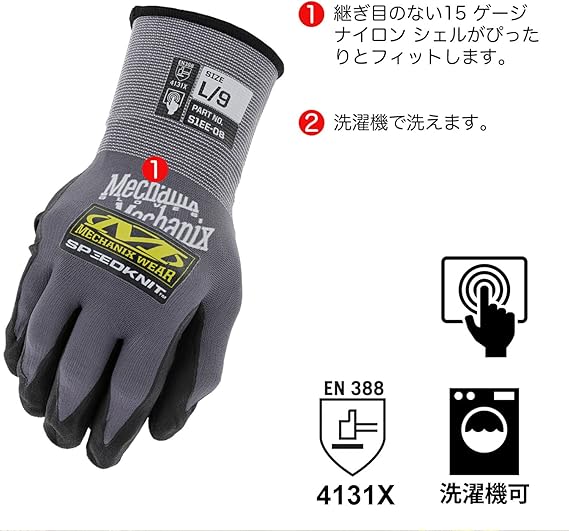 [メカニクスウェア] 安全 背抜き手袋 スピードニット XL グレー S1EE-08-010 作業用 耐摩耗 耐引裂 タッチスクリーン対応 洗濯可 メカニック 防災 DIY 【日本正規品】 a
