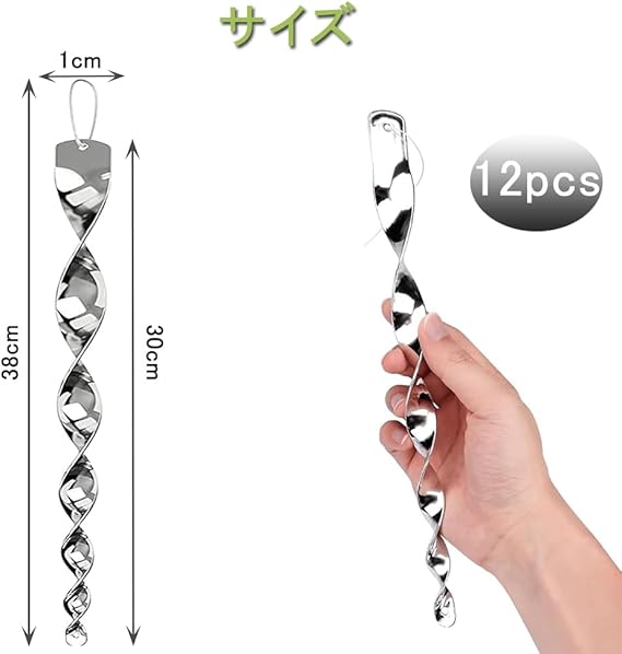 Phyxiul 鳥よけ12本セット 鳥避け棒 カラス対策 駆鳥反射板 吊り下げ式ベランダ 果樹園 物干し竿などの広い範囲で使用可能 使いやすい (12本セット シルバー) a