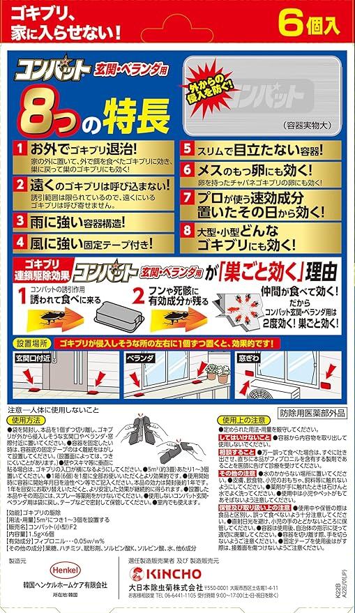 KINCHO コンバット ゴキブリ殺虫剤 屋外用(玄関 ベランダ) 1年用 6個入(防除用医薬部外品) a