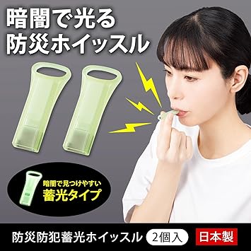 コモライフ 防災防犯 蓄光ホイッスル (2個入) 笛 緊急 ホイッスル 光る 防災グッズ アウトドア 日本製 a