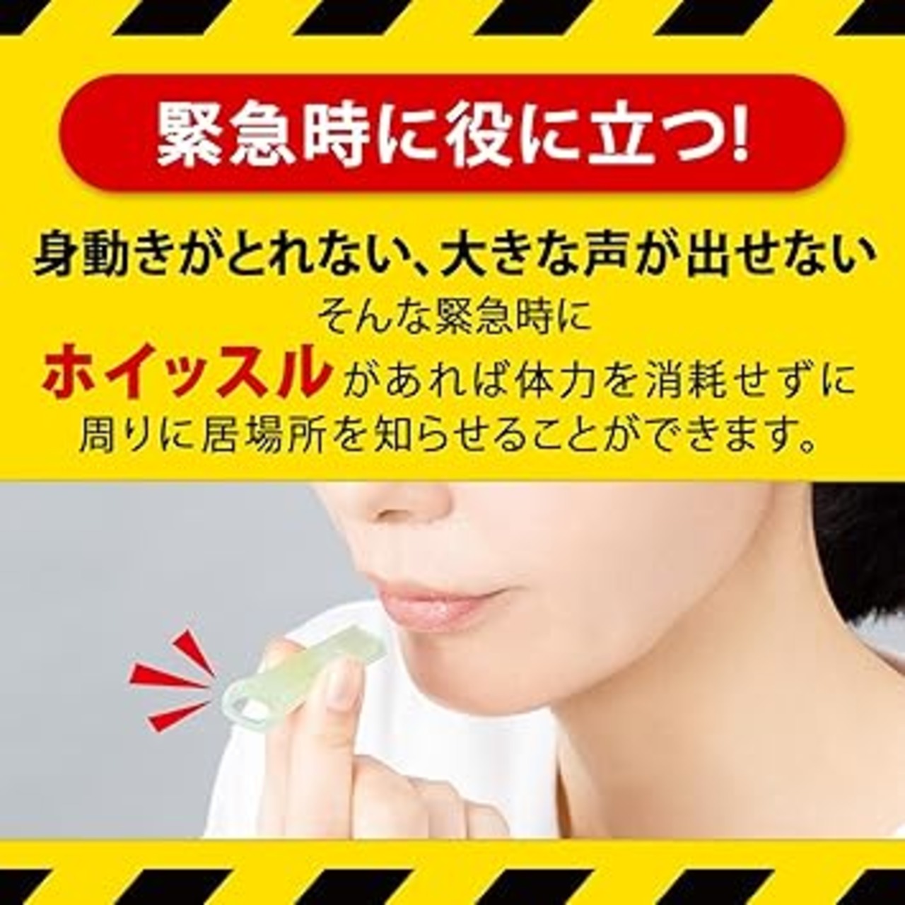 軽く吹いてもしっかり鳴る蓄光タイプの防災防犯ホイッスル!