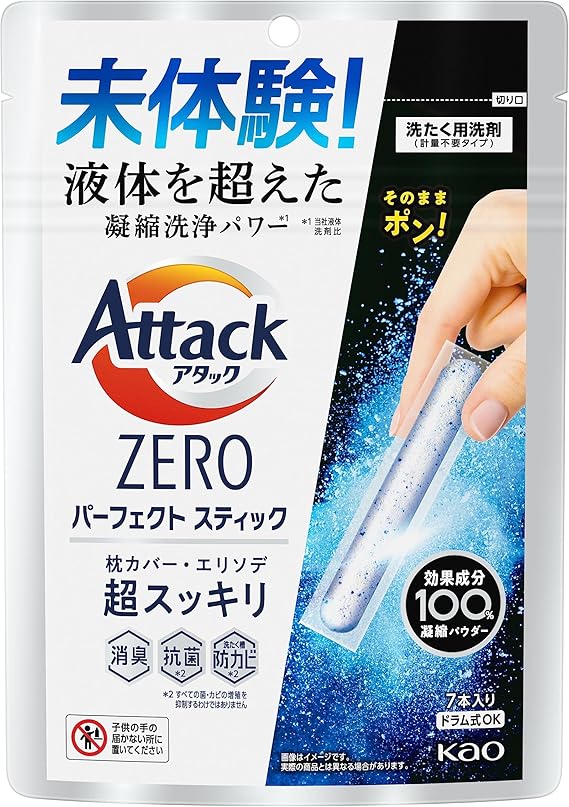 アタックZERO パーフェクトスティック 洗濯洗剤 液体を超えた凝縮洗浄パワーでエリソデも超スッキリ スプラッシュグリーンの香り 7本入り a