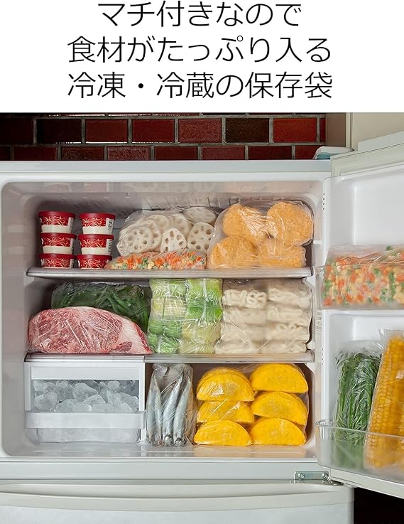 清潔に食品の包装ができ、食品以外の包装にも便利に使えるマチ付ポリ袋のキッチンラップです。縦350*横250mm。
