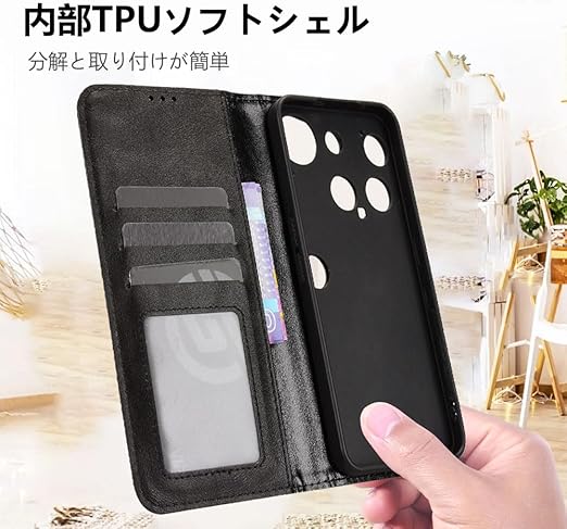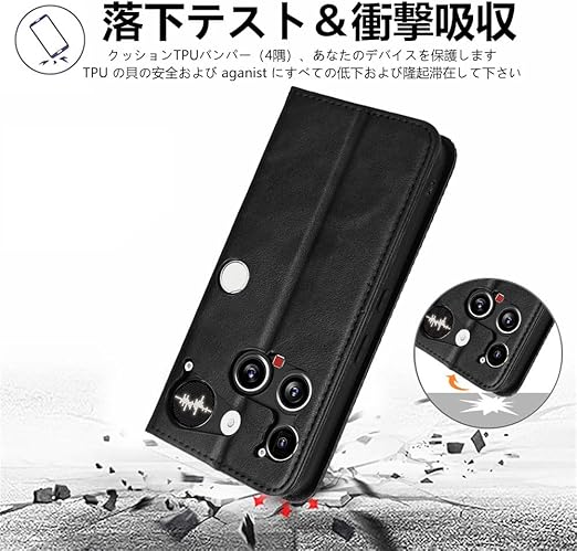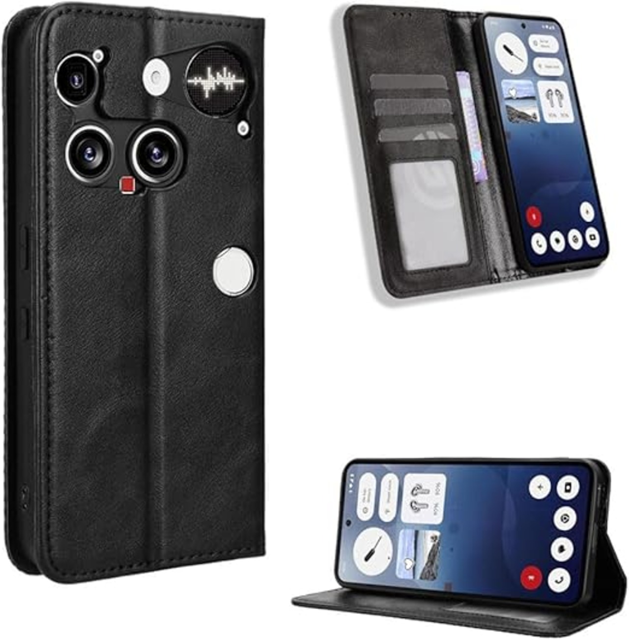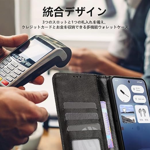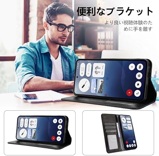 For Nothing Phone 3 ケース【MARR】 スマホケース 手帳型 シンプル カバー 手帳型ケース Nothing Phone 3 高級PU レザー カバー カードポケット 手作り スタンド機能付き 全面保護 マグネット 吸着 (ブラック) a