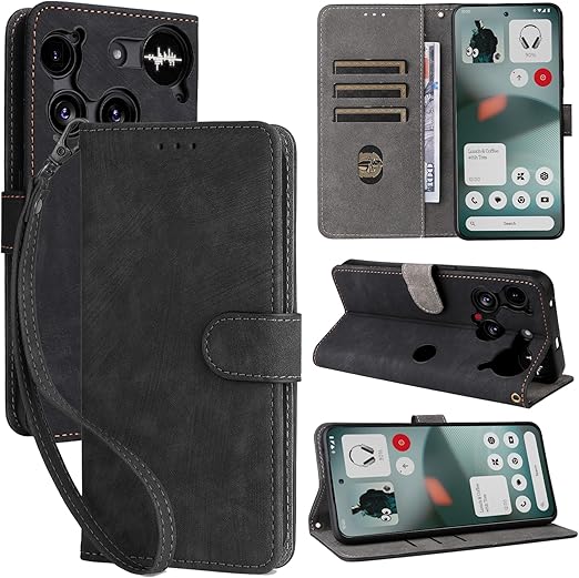 Nothing Phone 3 用 ケース 手帳型 Nothing Phone 3 用 カバー 財布型 【NOUKAJU】 カードポケット付き 高級 PUレザー 手触りが良い 落下防止 衝撃吸収 耐摩擦 全面保護 耐磁性RFID機能 マグネット式 カード収納 スタンド機能 軽量 薄型 ストラップ付き スマホケース (ブラック) a
