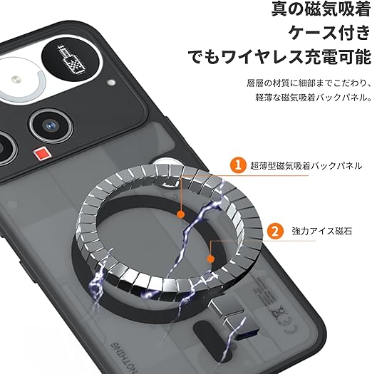 Nothing Phone 3 ケース カバー【NOUKAJU】 対応 ナッシングフォン 3 マグネット搭載 マット感 レンズ保護 米軍MIL規格TPU+PC素材 手触りが良い 落下防止 衝撃吸収 耐摩擦 全面保護 軽量 薄型 磁力で充電可能 つや消しの質感 黄ばみ防止(ブラック) a